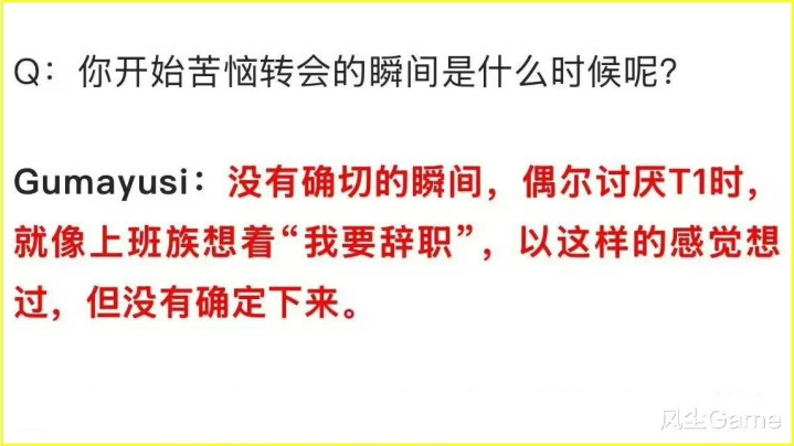 短短的两段话,姑姑给的信息是真不少,厌烦T1念念去GEN,临了没得选了,才加盟HLE,他念念给不雅众抒发的,可能是在T1呆得太久,有点厌恶T1的氛围和环境了,但这话说完,平直得罪了T1粉丝,而离队之后,第一手艺念念去GEN,又让HLE粉丝有点尴尬,一句话转折性得罪了三队粉丝。